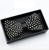 Hand Made Natural Bird Feather Polka Dot Exquisite Bow Tie w/FREE Brooch Pin Set